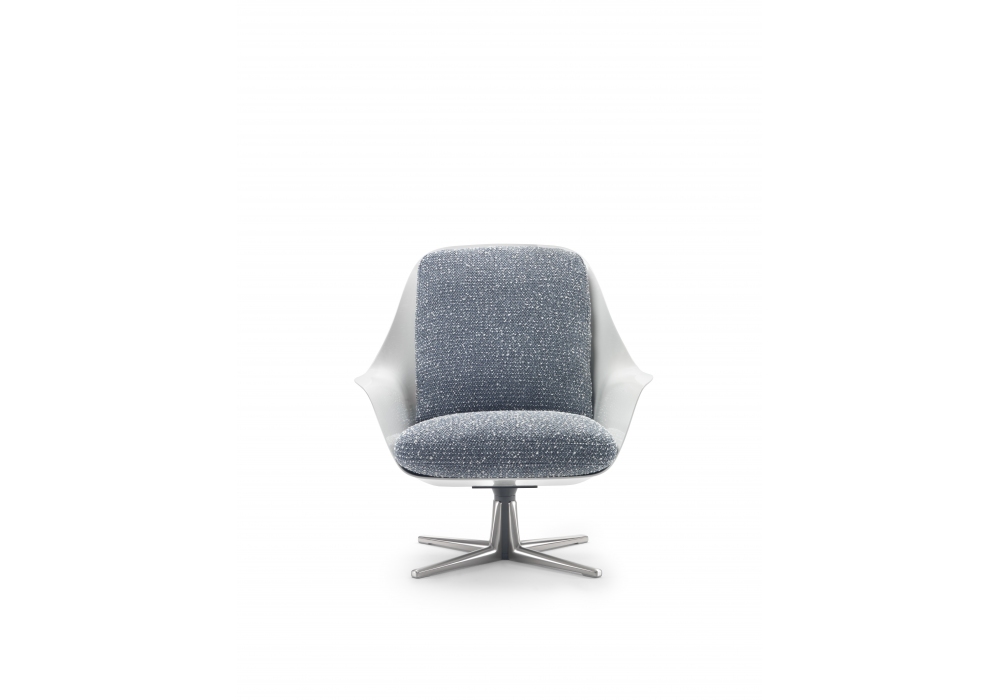 Sveva Light diseñada por Carlo Colombo para Flexform es una butaca con base de metal disponible en versiones giratorias de 4 o 5 radios, carcasa de poliuretano y cojines de asiento y respaldo tapizados en tela o piel.