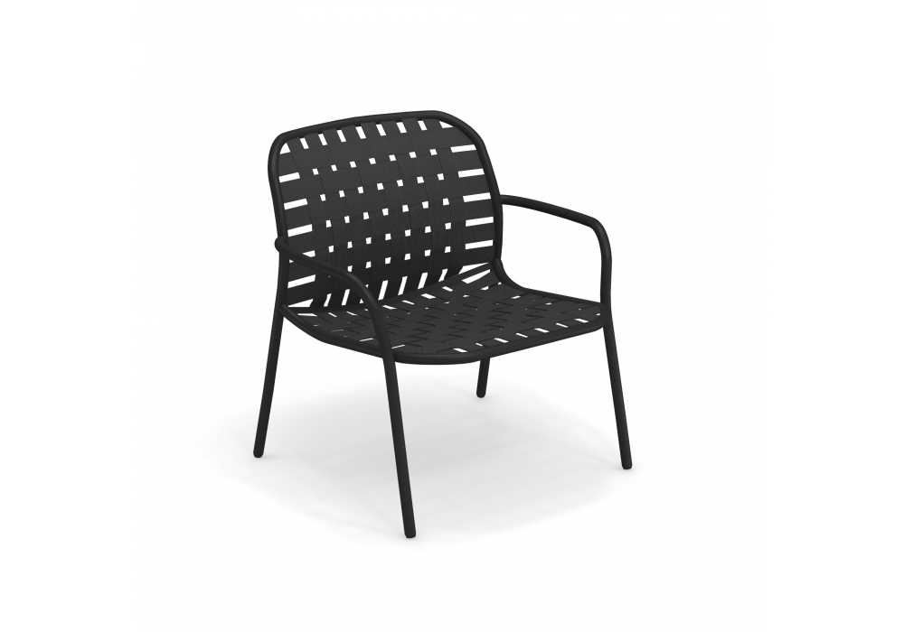 Yard diseñado por Stefan Diez para EMU es una butaca de jardín, nacido del entrelazado de correas elásticas, acopladas a la estructura de aluminio, dando vida a un conjunto con un estilo inusual y ecléctico y acentuado confort, totalmente utilizable para uso en exteriores. Disponible en diferentes acabados.