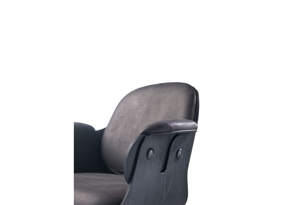 Low Lounger diseñada por Jaime Hayon para BD Barcelona es una butaca con estructura base en tubular de aluminio inyectado y acabado lacado en polvo. El asiento y el respaldo están hechos de madera contrachapada con superficies de nogal efecto natural y fresno natural. Apoyabrazos, asiento y respaldo tapizados en diferentes tejidos y pieles.
