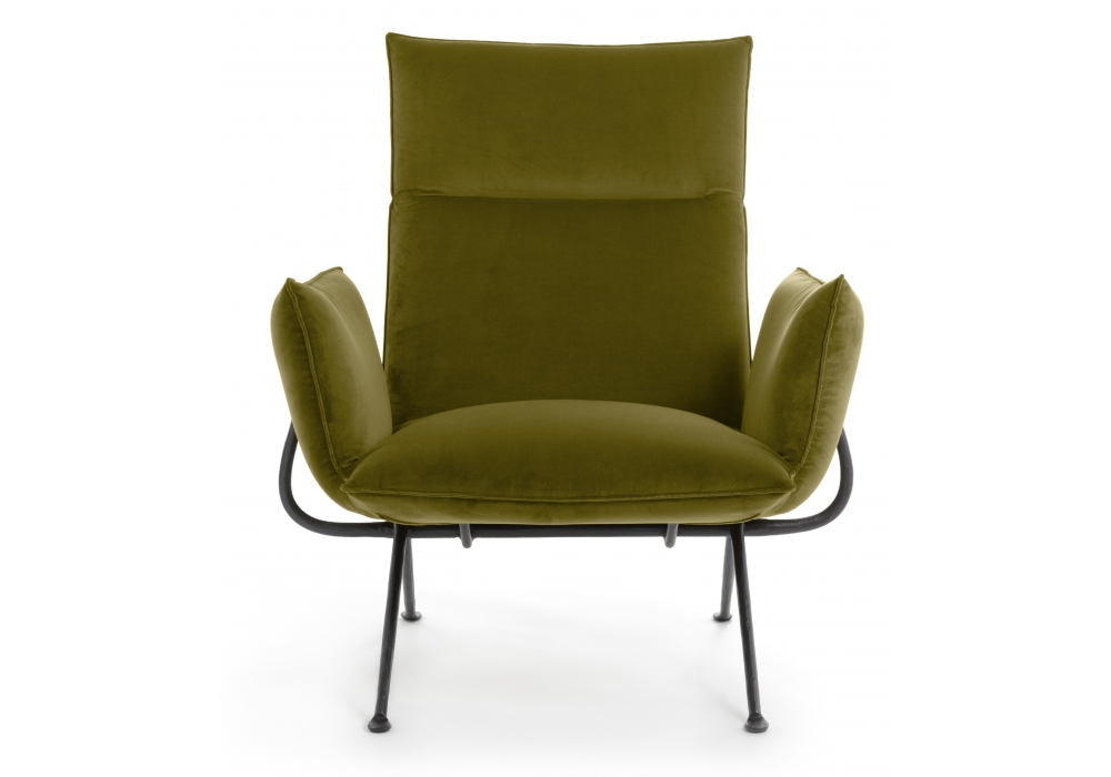 Officina High Back diseñada por Ronan & Erwan Bouroullec para Magis es una butaca con estructura en hierro forjado, galvanizado en caliente o pintado en poliéster. Cojín de espuma de poliuretano ignífugo revestido de tejido o piel. Disponible en diferentes acabados.