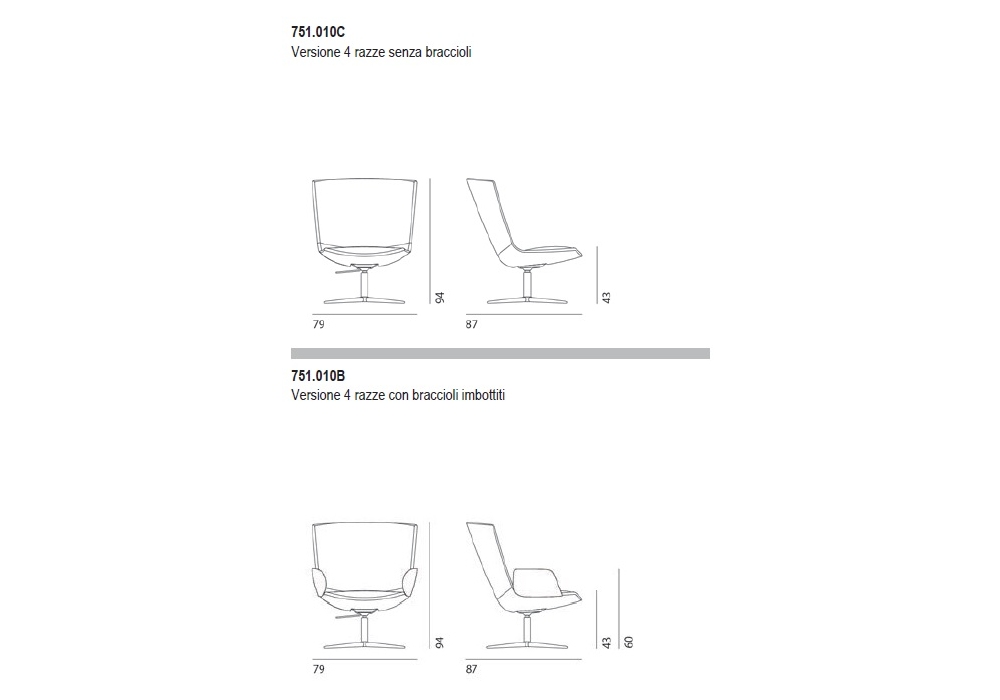 Calum Lounge Comfort diseñada por Simon Pengelly para Desalto es un sillón lounge con asiento moldeado en poliuretano rígido y acolchado en espuma. Base giratoria de 4 radios en aluminio equipada con un mecanismo de ajuste de la inclinación del asiento. Con o sin reposabrazos acolchados.