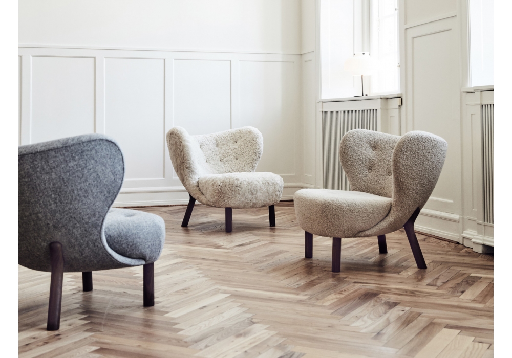 Little Petra diseñada por Viggo Boesen para &Tradition es una butaca con estructura de haya maciza y tapizada en tejido o piel de oveja.