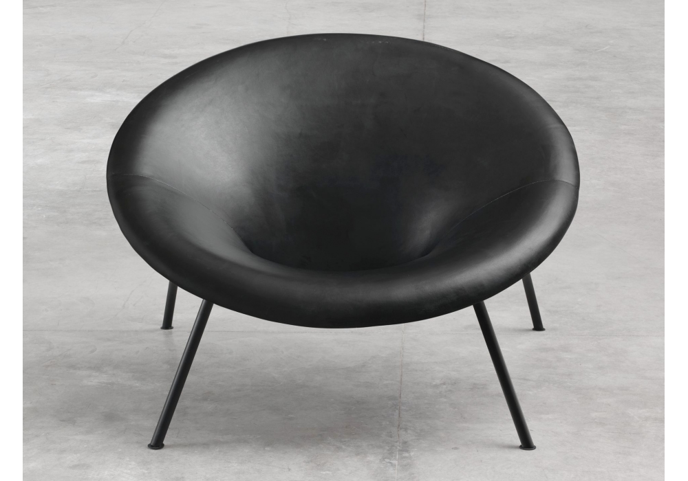 Pùka diseñada por Verter Turroni para ImperfettoLab es una butaca realizada en fibra de vidrio, asiento tapizado en piel.