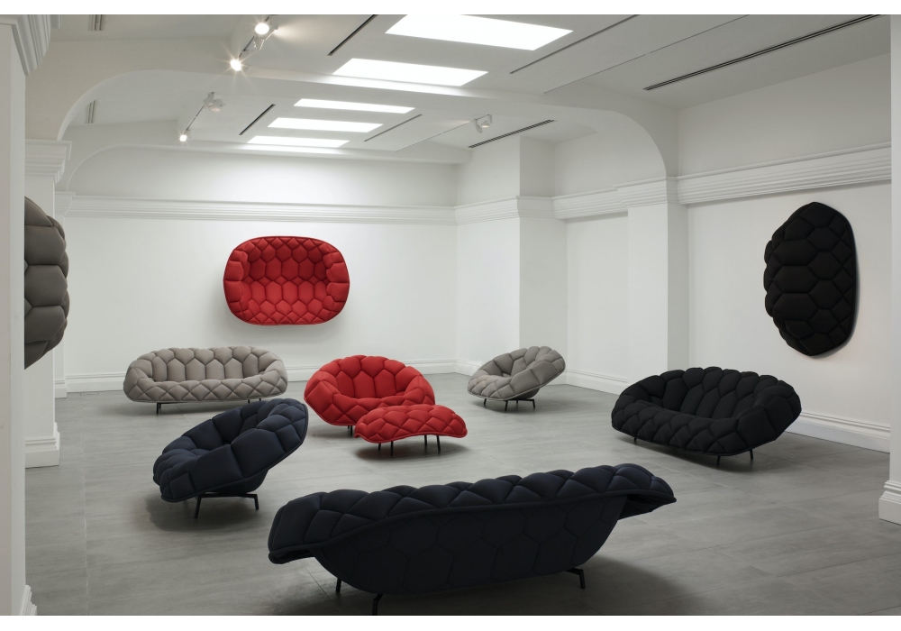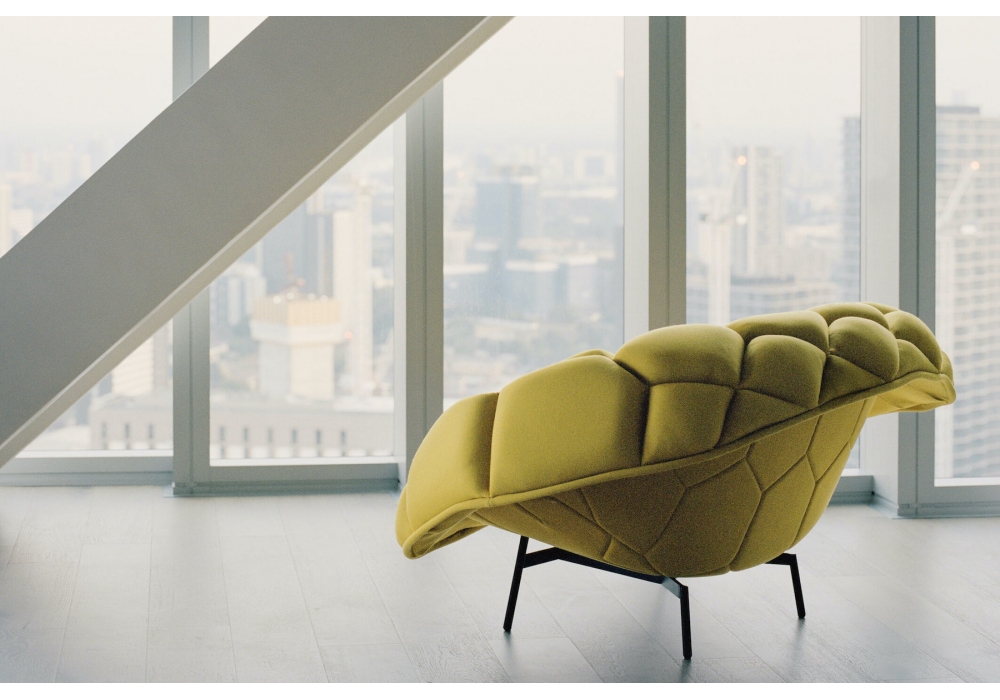 Quilt diseñado por Ronan & Erwan Bouroullec para Established & Sons es un sillón con estructura en acero pintado en polvo negro e inserciones de espuma. Tapa no desenfundable en diferentes acabados.