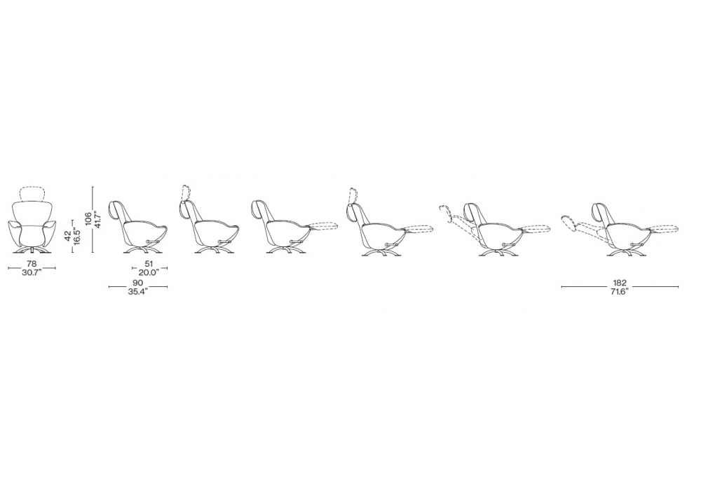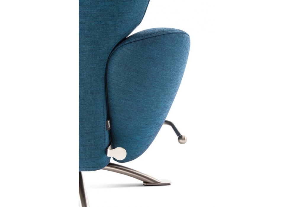 K10 Dodo diseñada por Toshiyuki Kita para Cassina es una butaca realizada con estructura de acero tubular, asiento y respaldo con correas elásticas, acolchado de espuma de poliuretano y guata de poliéster, y tapizado en tela o piel. Base giratoria de tubo de acero niquelado con acabado satinado.