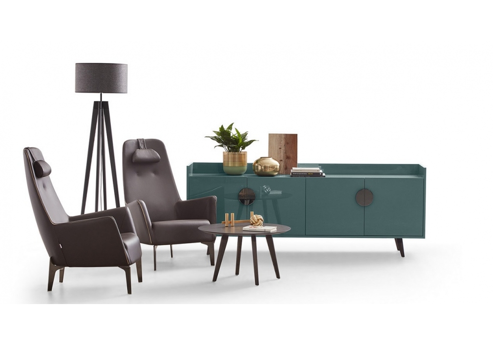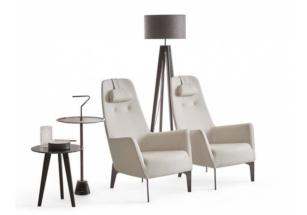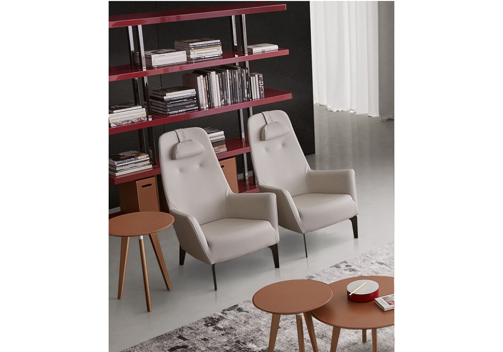 Valentina diseñada por Carlo Bimbi para Dema es una butaca con estructura de acero acolchada con espuma de poliuretano moldeada y revestida con tejido protector acoplado, resortes con cinturones elásticos, base fija en metal cortado con láser completo con antideslizante en material termoplástico moldeado. Revestimiento en tela o piel.