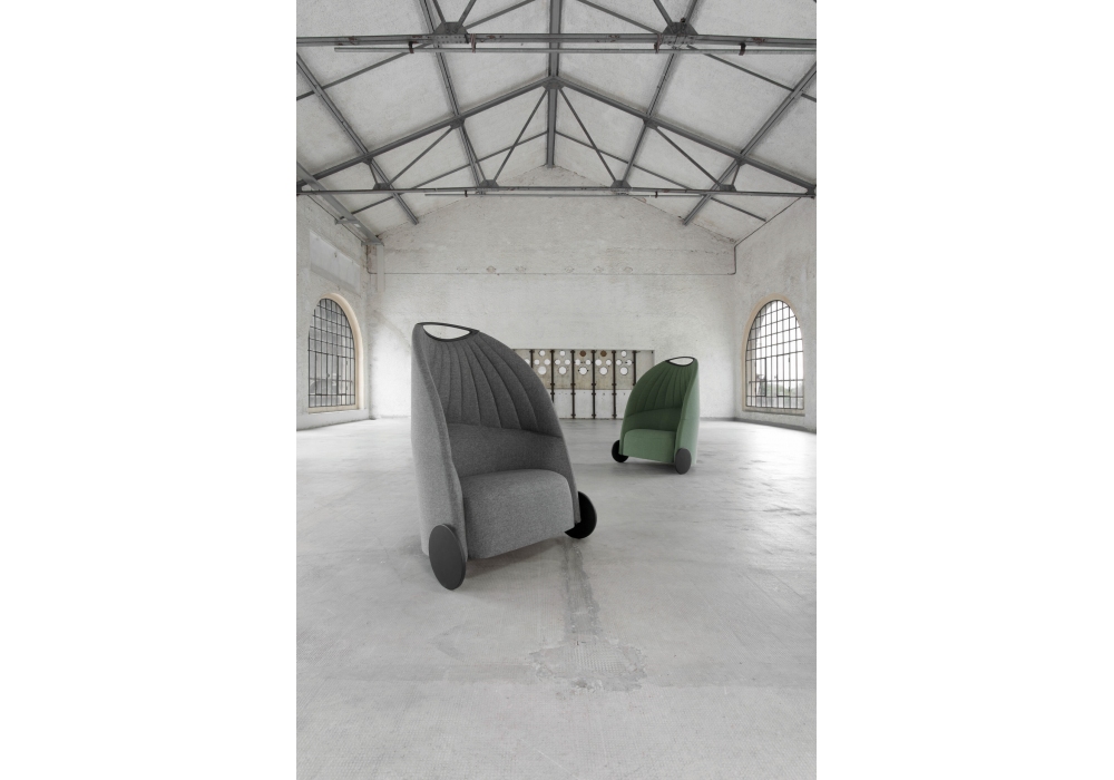 Biga diseñada por Favaretto & Partners para Luxy es una butaca acústica con respaldo alto. Acolchado de espuma de poliuretano flexible, fonoabsorbente con estructura interna de nido de abeja. Pies o ruedas en poliuretano rígido negro con inserto de acero. Disponible con o sin asa en el respaldo.