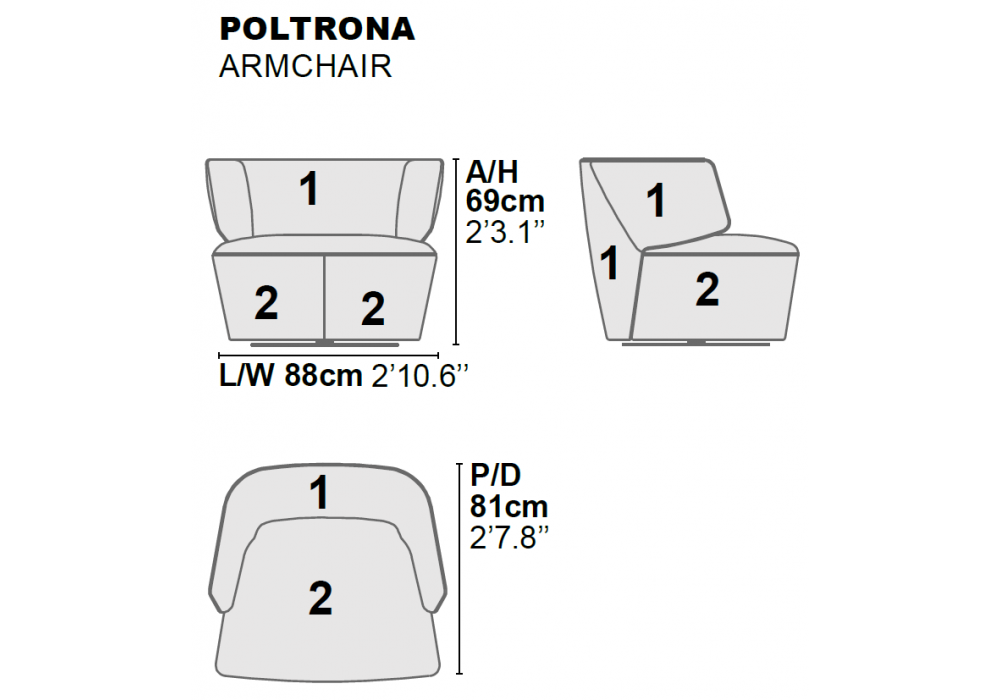 Diana diseñada por Momenti Lab para Momenti es una butaca con estructura en abeto macizo, fibra de madera, revestimiento de poliuretano. Base giratoria con acabado en cromo brillo y sistema de retorno a posición. Tapicería en diferentes acabados, tela o piel no desenfundable.