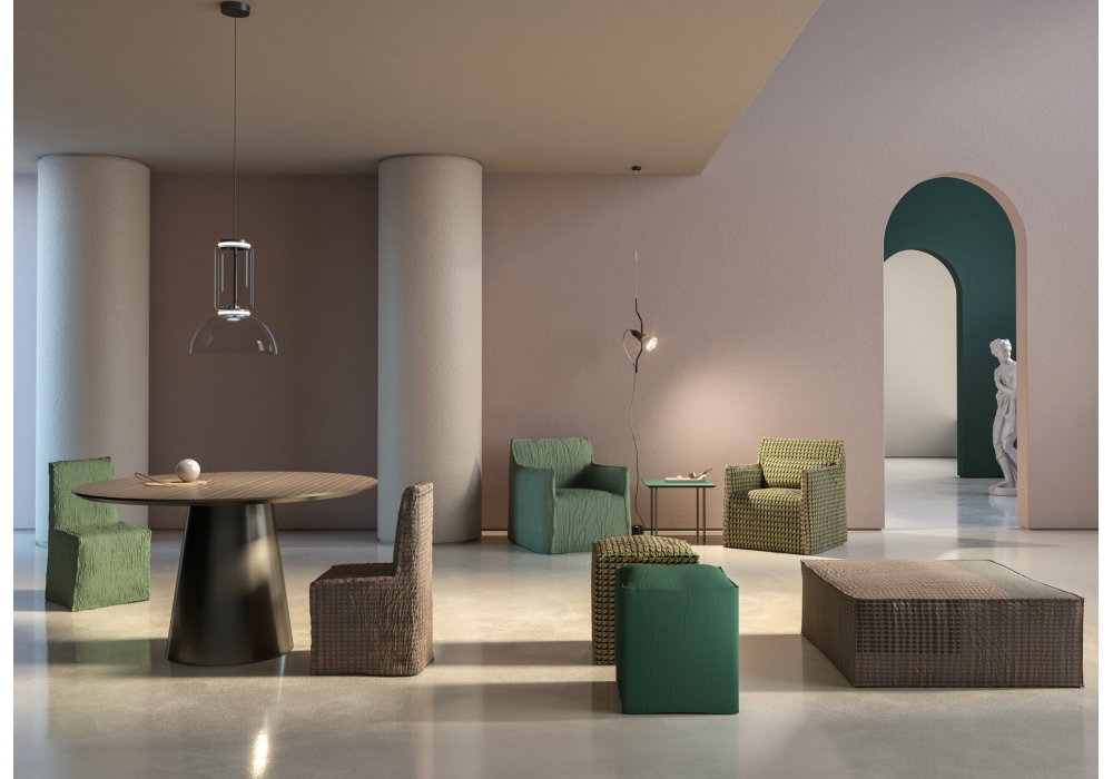 Rochester diseñada por Momenti Lab para Momenti es una butaca con estructura en metal pintado en polvo. Carcasa del asiento con acolchado de espuma de poliuretano ignífugo. Costuras de pico de ganso. Funda extraíble.