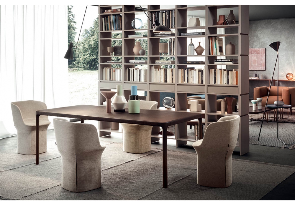 Esse diseñado por Philippe Tabet para Pianca es un sillón con base giratoria de 360° con retorno automático. Asiento acolchado moldeado en espuma de poliuretano y tapizado en tela o piel. La bisagra es siempre de color gris oscuro. La versión con revestimiento removible no se puede realizar en piel.