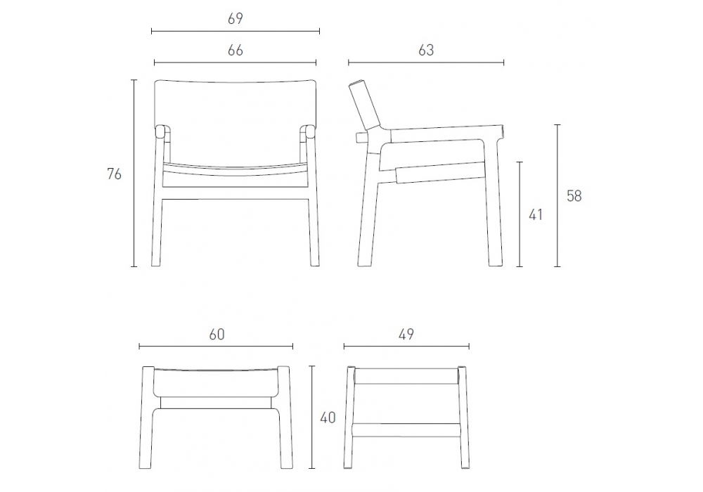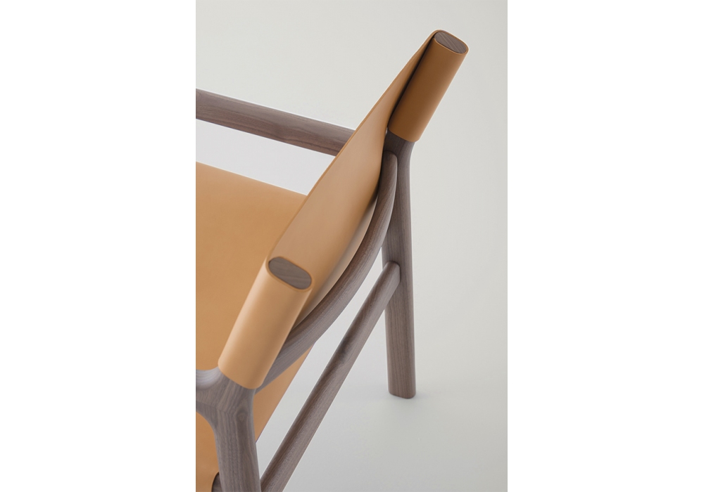 Fushimi Lounge diseñada por Philippe Tabet para Pianca es una butaca realizada con estructura en nogal Canaletto macizo, fresno macizo teñido Essence (Borgoña, Canaletto y Roble Natural) o Fresno Negro. Asiento con dos capas acopladas exclusivamente en Cuero. Disponible con o sin reposapiés.