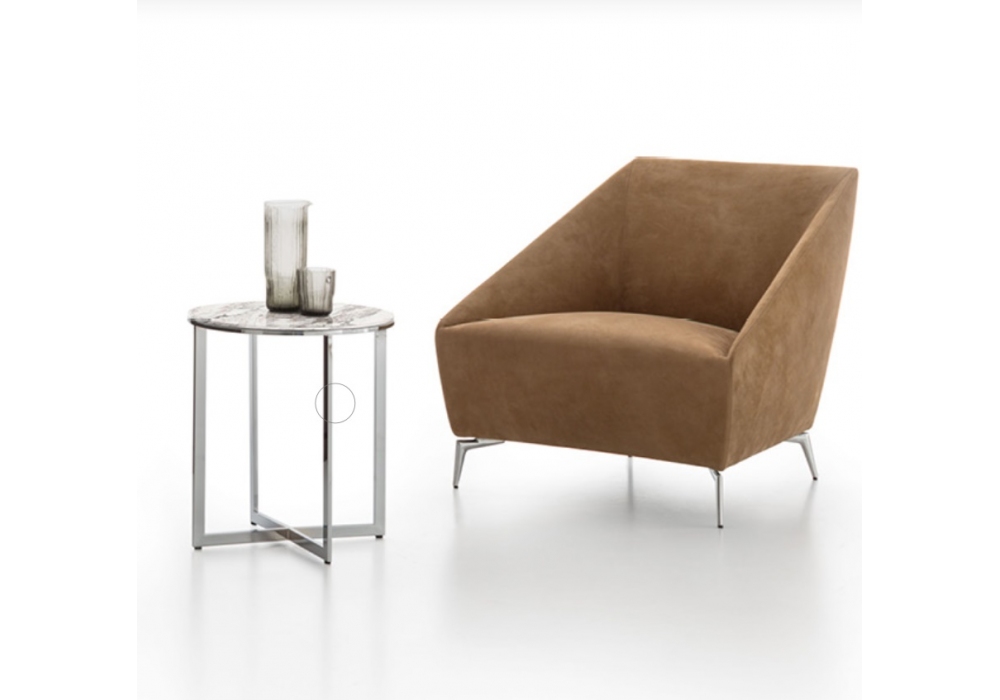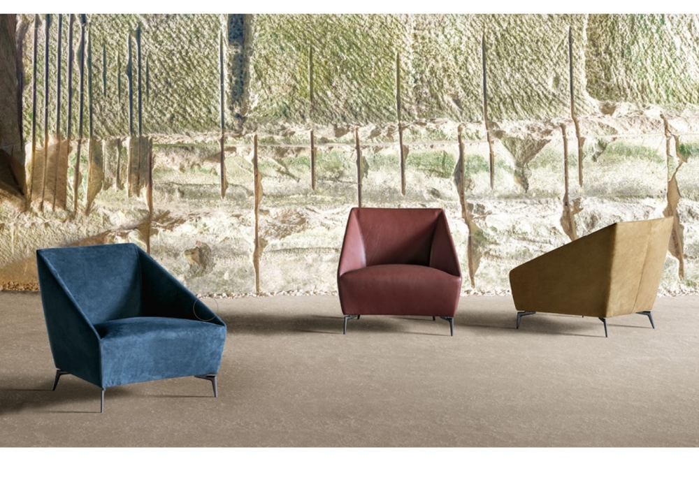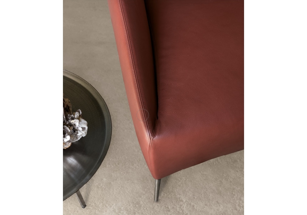 Zoe diseñada por Giuseppe Bavuso para Alivar es una butaca realizada con estructura de madera recubierta de espuma de poliuretano de diferentes densidades y forro de fibra de poliéster. Pies en fundición de aluminio pulido o pintado. Revestimiento en piel o tela.