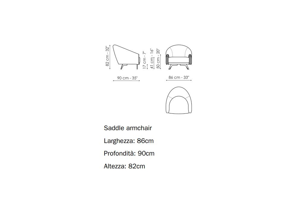 Saddle diseñada por Giuseppe Viganò para Bonaldo es una butaca con tapizado desenfundable en tejido, en diferentes acabados. La inserción del apoyabrazos central es de piel Ponza mientras que la del apoyabrazos perimetral es del mismo acabado que la tapicería. Los pies son de metal pintado mate, en varios colores.