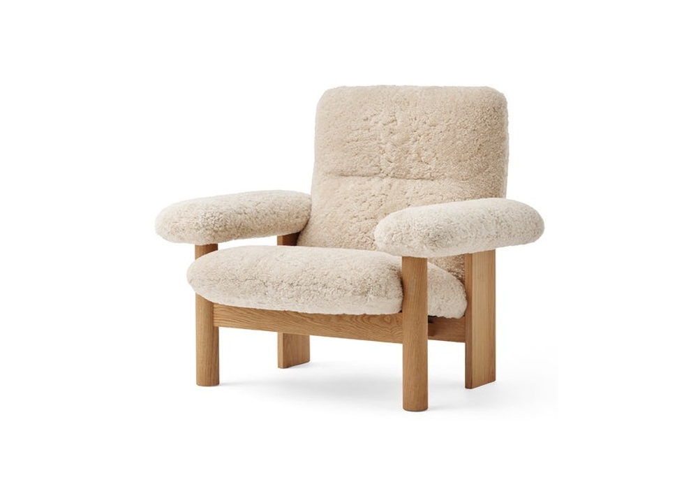 Brasilia diseñada por Anderssen & Voll para Audo Copenhagen es una butaca con estructura en roble o nogal, tapizado en piel o piel de oveja. Disponible en diferentes acabados.