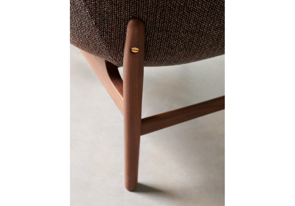 Harbour diseñada por Norm Architects para Audo Copenhagen es una butaca acolchada, tapizada en tela o piel y patas en roble o nogal. Disponible en diferentes acabados.