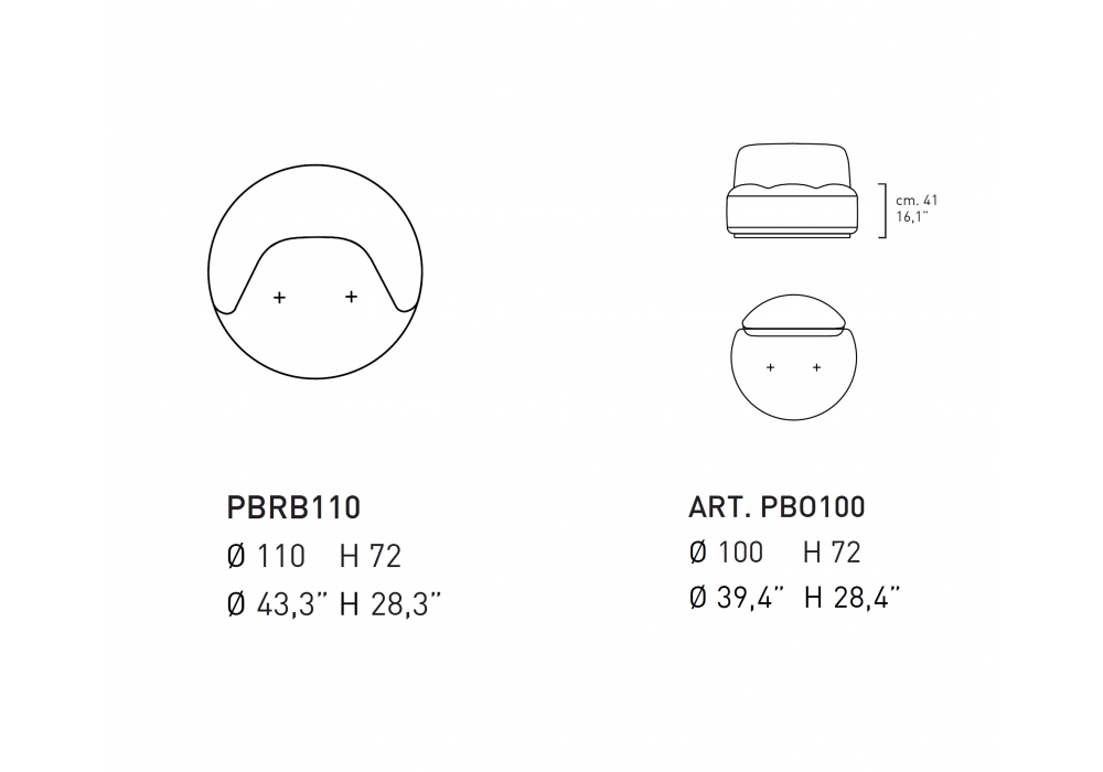 | Dimensiones | Ø110 x H 72 cm(Mod.1); Ø100 x H 72 cm(Mod.2). |