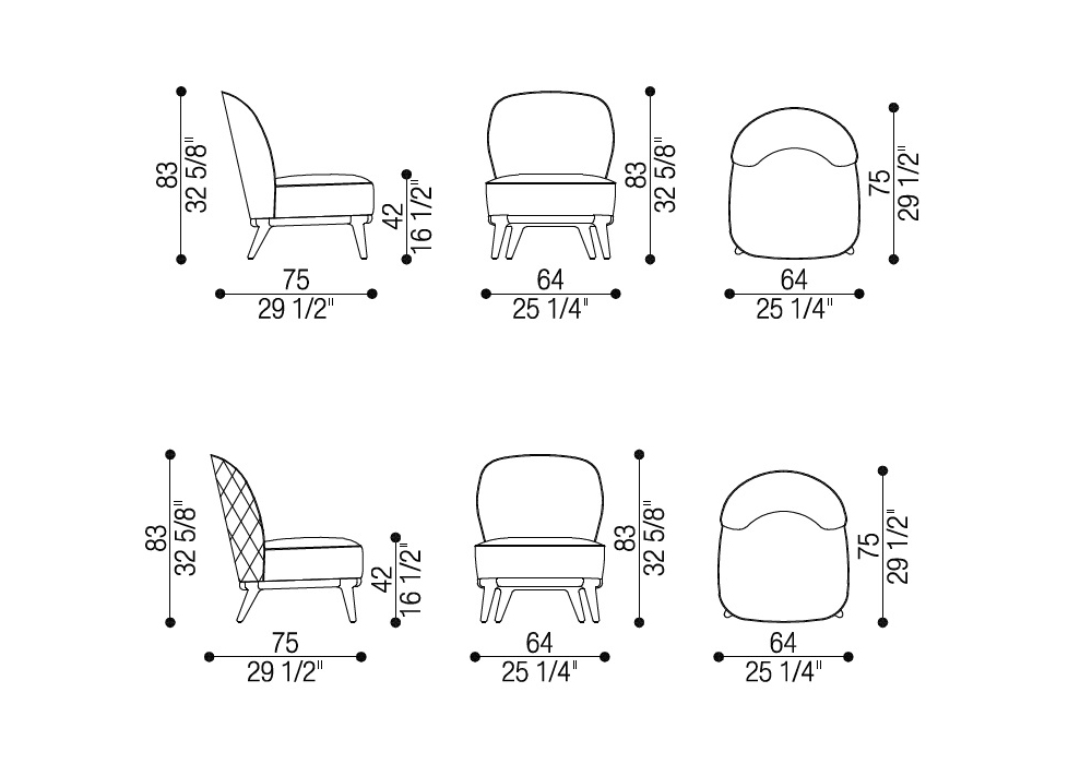 Nicole diseñada por Castello Lagravinese Studio para Opera Contemporary es una butaca acolchada con estructura de madera y revestimiento fijo en tejido o piel.