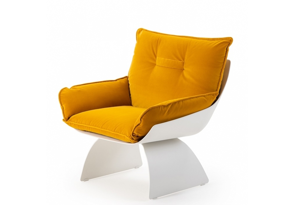 Silhouette diseñada por Gensler para Turri es una butaca con estructura en poliuretano compacto lacado blanco mate. Relleno de espuma de poliuretano multidensidad con revestimiento en diferentes tejidos o pieles. Base en metal lacado blanco mate.