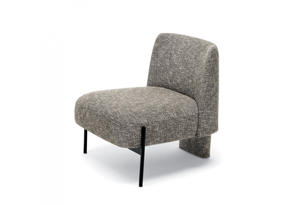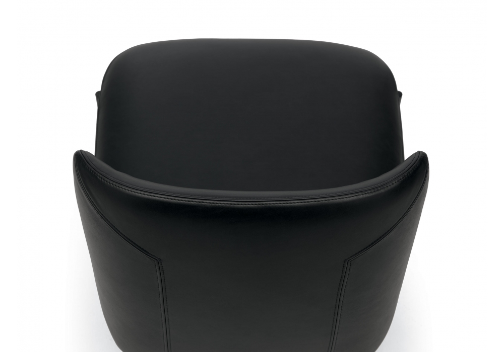 Virgin diseñada por Mauro Lipparini para MisuraEmme es una butaca realizada con base en metal pintado de negro y carcasa en poliuretano espumado en frío con revestimiento en tejido o piel. Disponible con o sin reposabrazos.