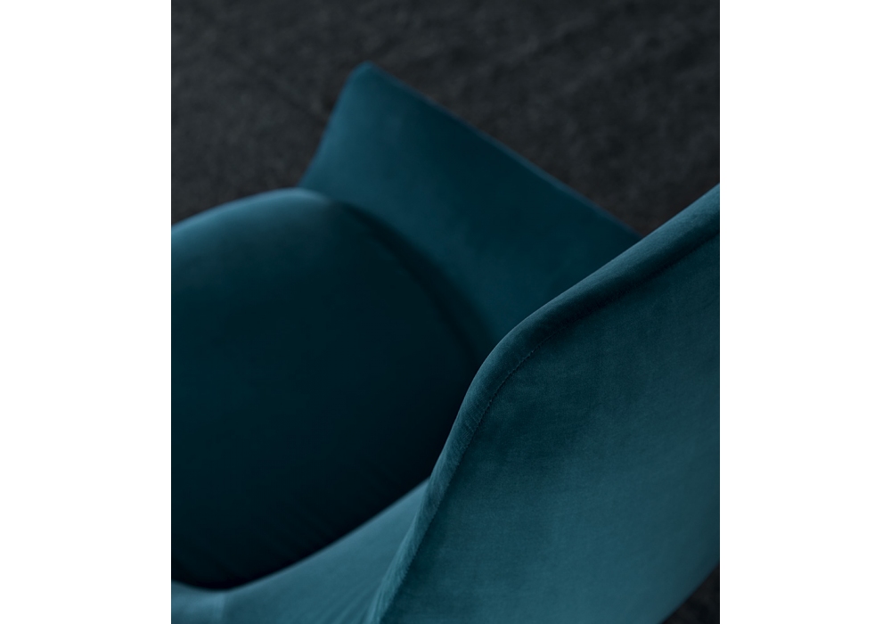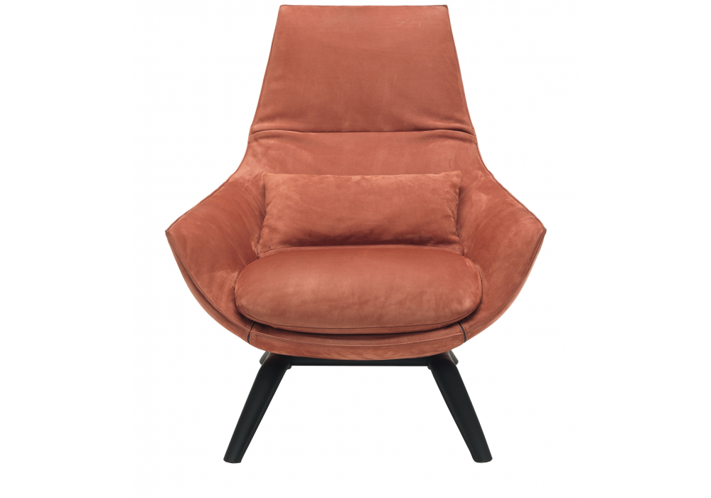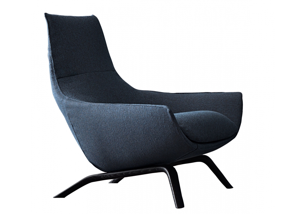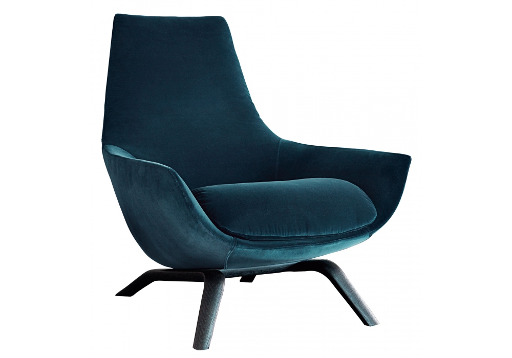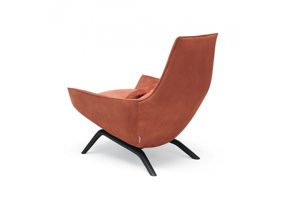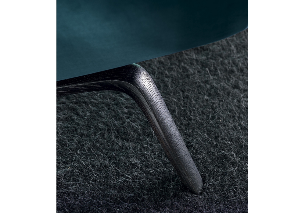 Ermes diseñada por Mauro Lipparini para MisuraEmme es una butaca realizada con base fija con elaboración artesanal en roble macizo teñido y carcasa de poliuretano espumado en frío con tapizado en tejido o piel, desmontable por personal experto. Bajo pedido, es posible cubrir el frente del sillón con una tela diferente a la del respaldo.