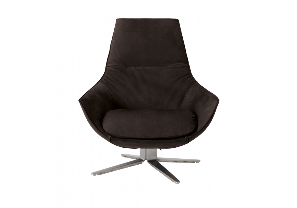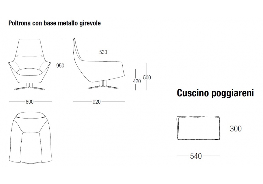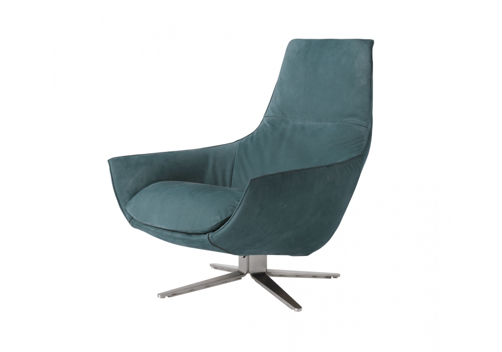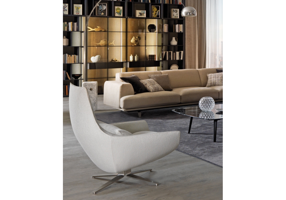 Ermes diseñada por Mauro Lipparini para MisuraEmme es una butaca realizada con una base giratoria en metal pintado gunmetal y una carcasa de poliuretano espumado en frío con revestimiento de tela o piel, desmontable por personal experto. Bajo pedido, es posible cubrir el frente del sillón con una tela diferente a la del respaldo.