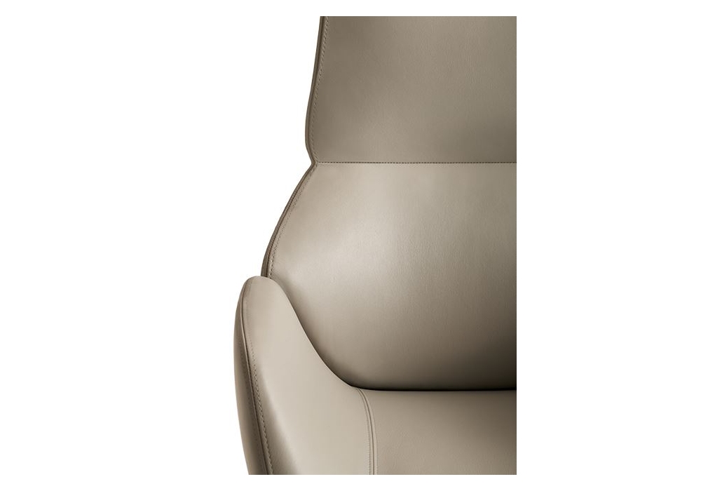 Calathea conçue par Roberto Lazzeroni pour Giorgetti est une bergère de direction, avec base en métal Étain. Sellerie cuir, également disponible en deux coloris différents pour la carrosserie et l'intérieur. La base est pivotante avec des roues, réglable en hauteur.