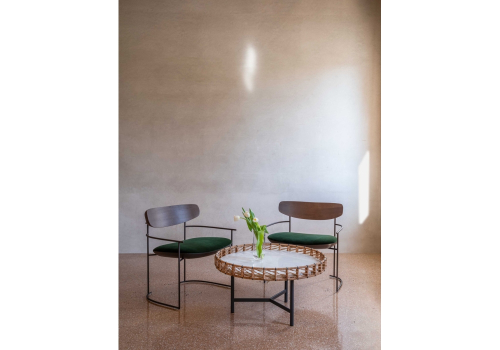 Keel Light diseñada por M + V para Potocco es una butaca con estructura en varilla de metal pintado gofrado, respaldo en fresno macizo y asiento tapizado en espuma de poliuretano ignífuga con revestimiento en diferentes pieles, tejidos o ecopieles.