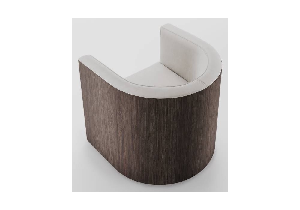 Confident Wood diseñada por Piero Lissoni para Living Divani es una butaca con estructura portante en madera preformada curvada con acolchado en espuma de poliuretano de densidad diferenciada; carcasa exterior revestida con panel contrachapado curvado, chapado en madera multilaminar de roble natural o teñido antracita, Striped Grey y Stone Oak®. Revestimiento en piel o tejido.