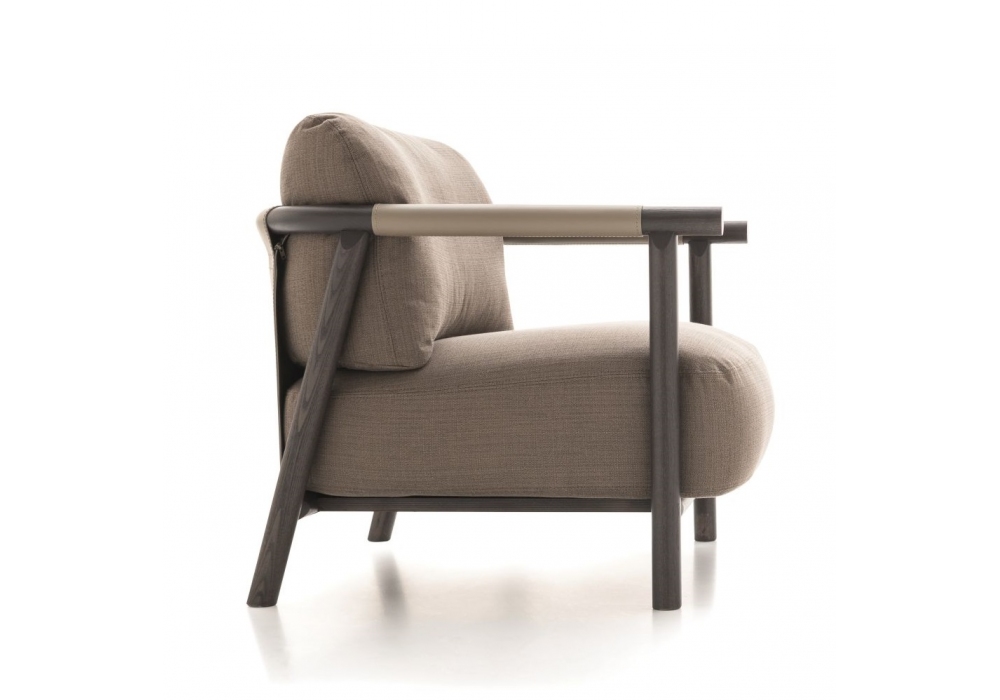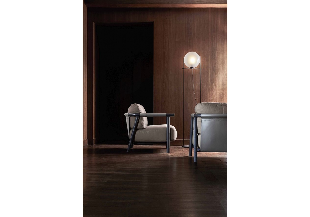 Nathy diseñada por Gabriele y Oscar Buratti para Ditre Italia es una butaca con patas de madera, asiento tapizado y respaldo tapizado en tejido o piel. Detalles del tapizado trasero del respaldo y reposabrazos en cuero genuino. Disponible en diferentes acabados.