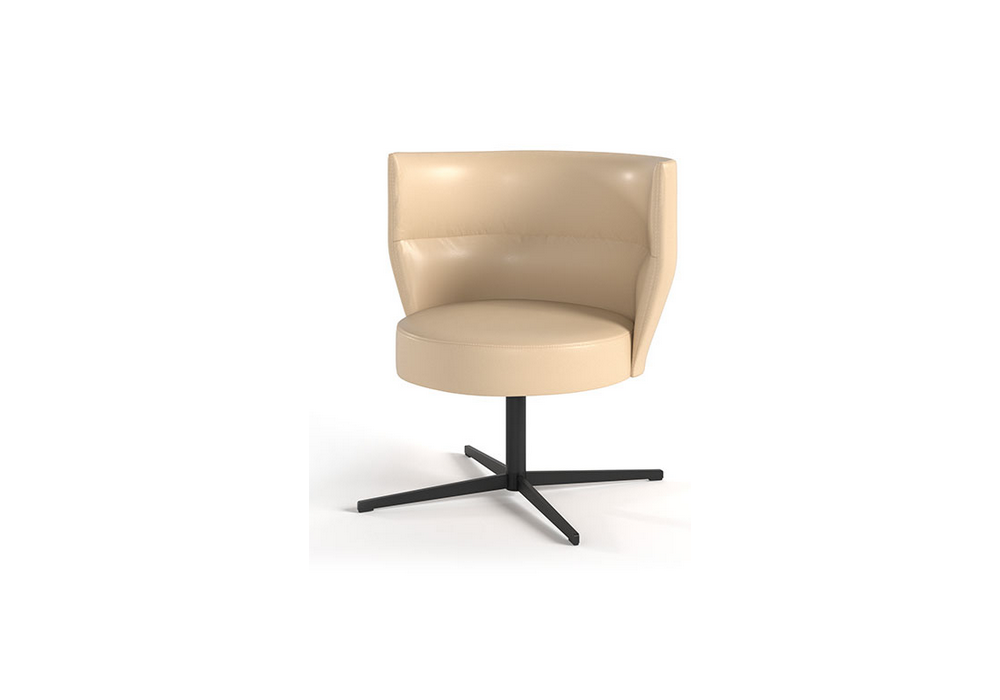 Sena diseñada por Christophe Pillet para Punt es una butaca lounge con base giratoria en metal epoxi negro y tapizado en diferentes tejidos o pieles. Bajo pedido también disponible en versión bicolor.