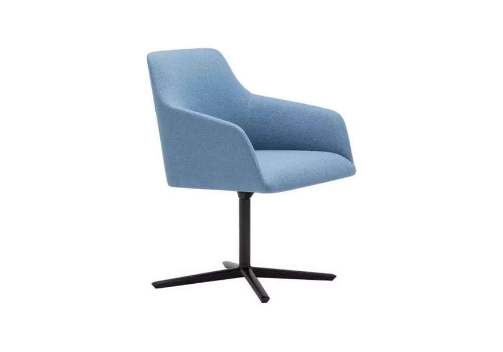 Alya diseñada por Lievore Altherr Molina para Andreu World es una butaca con base de metal disponible en versión giratoria de cuatro radios o patín, en varios acabados. El tapizado se realiza en varios tejidos y colores.