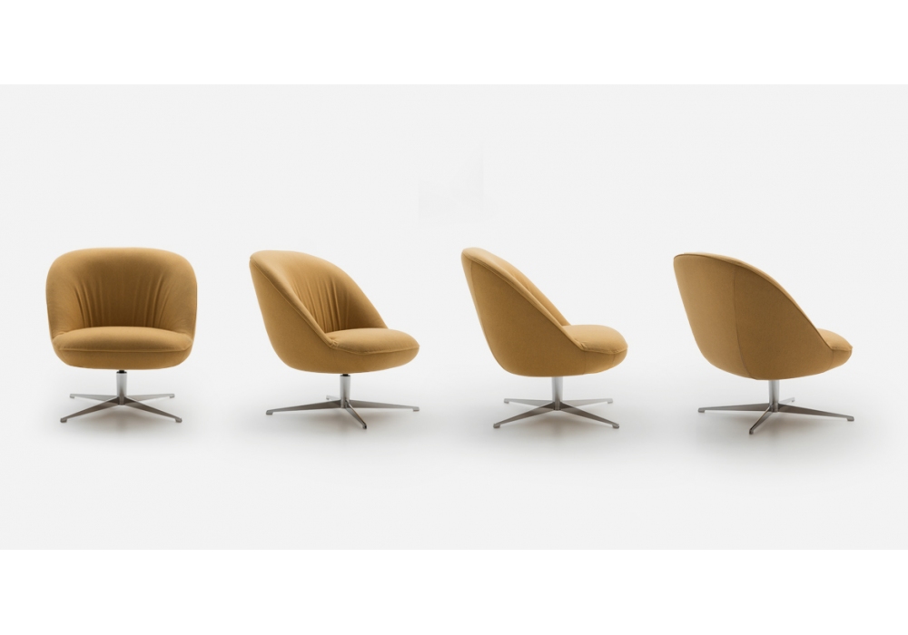 Ella diseñada por Pier Luigi Frighetto para Pianca es una butaca realizada con una base de metal de 4 patas o una base giratoria de 4 radios. Revestimiento en tela o piel.