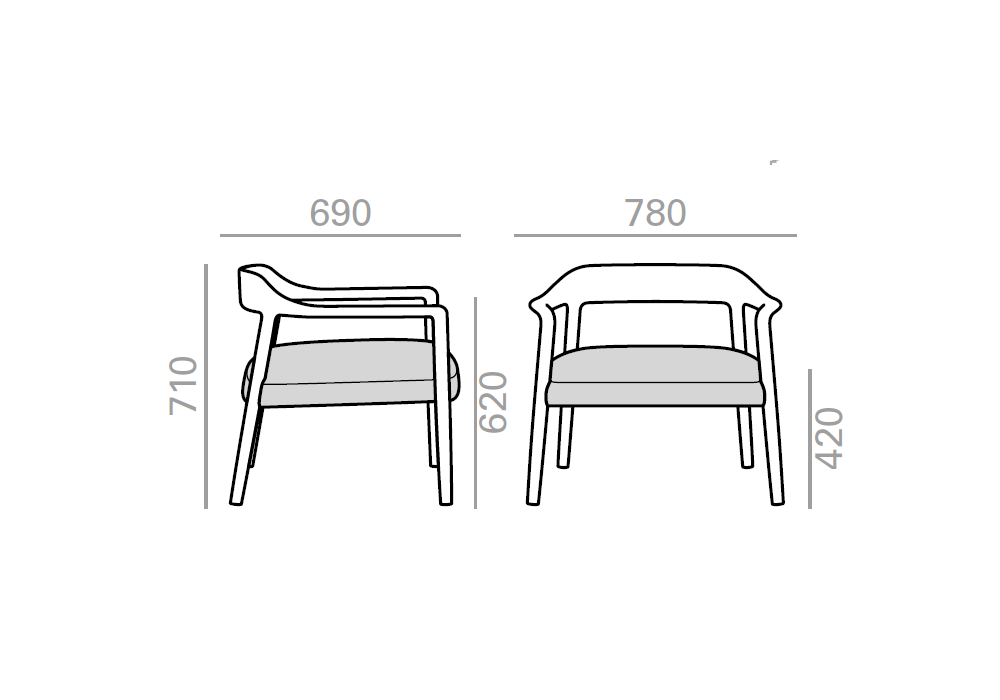 Liceo diseñada por Piergiorgio Cazzaniga para Andreu World es una lounge chair con estructura en madera maciza de fresno y tapizado del asiento en tela, piel o ecopiel.