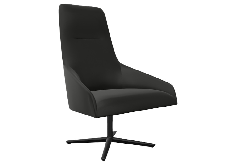Alya Executive diseñada por Lievore Altherr Molina para Andreu Wolrd es una silla lounge con asiento y respaldo acolchados tapizados en diferentes pieles, ecopiel o tejidos. Base central giratoria de aluminio de 4 radios, sistema de retorno automático y acabado en aluminio pulido, blanco o negro.