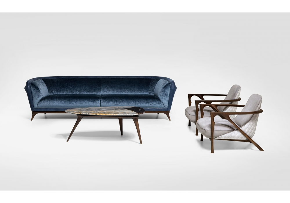 Alya diseñada por Steve Leung para Visionnaire es una butaca con estructura de fresno macizo mate y respaldo tapizado en tejido galuchat-rel acolchado color cuarzo. El acolchado es de espuma de poliuretano y acrílico, revestido con una selección de tejidos o pieles. El asiento siempre está acolchado con poliuretano revestido de tela y piel.