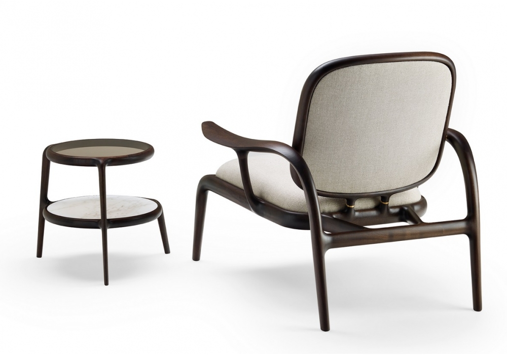 Eileen diseñada por DRAW Studio para Ceccotti Collezioni es una butaca con estructura realizada en nogal americano macizo o fresno. Asiento y respaldo en contrachapado de álamo, acolchado, tapizado en tela o piel. Disponible en diferentes acabados.