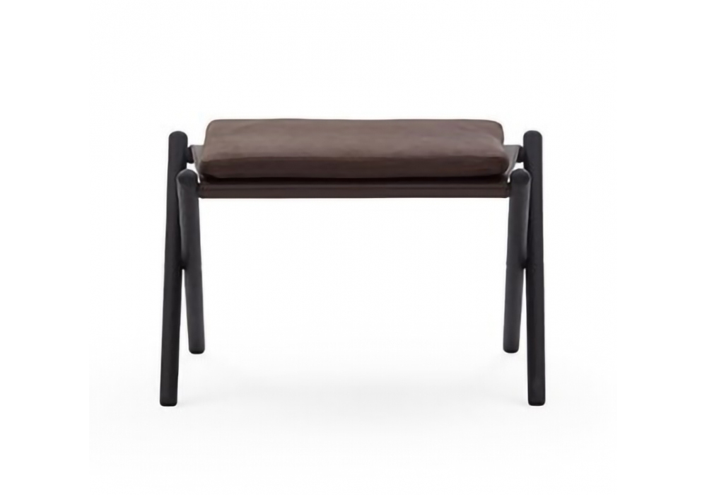 D'Antan entworfen von Raffaella Mangiarot ti für DePadova ist ein Outdoor-Sessel mit einer Struktur aus massivem dunklem Eschenholz, das mit transparentem, lösungsmittelbasiertem Lack lackiert ist. Sitz- und Rückengurte sind aus braunem Leder. Die Rückenlehnenkissen sind aus Gänsedaunen mit Baumwollleinenbezug und Stützgurten ebenfalls aus braunem Leder. Die Einlegesohlen bestehen aus thermoplastischem Material. D'Antan ist in einer Version komplett mit Fußstütze oder nur mit Sessel erhältlich.