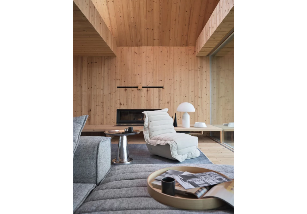 Plumeau diseñada por Cristina Celestino para Gervasoni es una butaca con relleno de espuma de poliuretano y funda desenfundable, parte delantera acolchada, que puede realizarse en diferentes tejidos. Pies en PE, acabado negro.