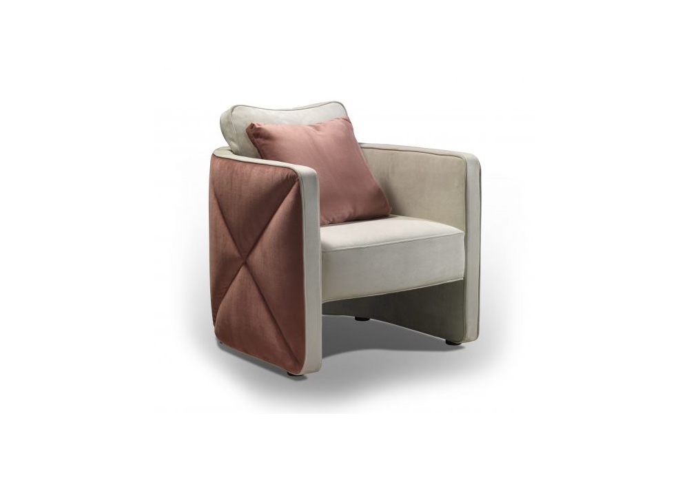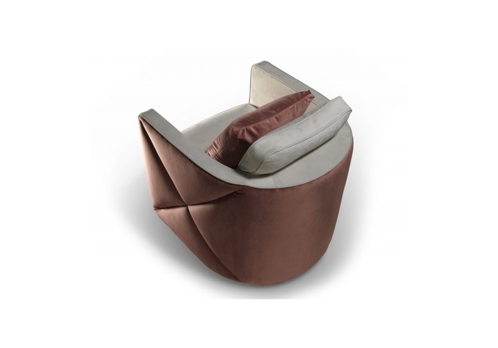 Aura diseñada por Emanuele Missaglia para Reflex Angelo es una butaca con acolchado de espuma de poliuretano de densidad diferenciada y estructura interna de madera. Detalles de diamantes convexos en los lados creados por las costuras cruzadas y el doble ribete alrededor de la silla. Cojín de respaldo de pluma de ganso con inserto rígido de poliuretano. Tapizados disponibles en piel o tela también combinados entre sí.