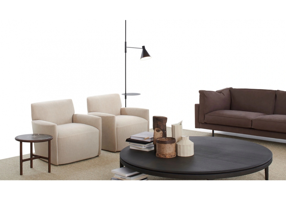 Ami diseñada por Yabu Pushelberg para DePadova es una butaca realizada con estructura de acero con cinchas elásticas y panel de madera contrachapada de abedul. El acolchado es de espuma de poliuretano de diferentes densidades y guata de poliéster forrada de terciopelo de poliéster. El tapizado es desenfundable en tejido o fijo en piel o terciopelo. Las patas son de material termoplástico o con mecanismo de base giratoria. Ami está disponible en diferentes acabados.