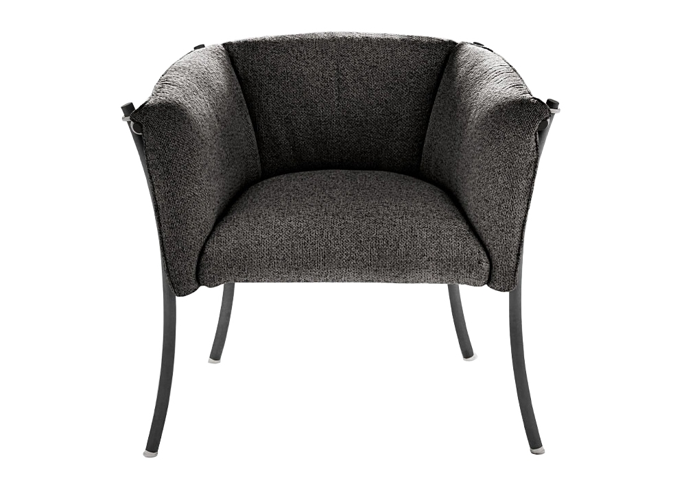 Smeralda diseñada por Anna von Schewen para DePadova es una butaca con estructura de acero con revestimiento en polvo de color gris antracita mate. El asiento tiene estructura de acero y correas elásticas, acolchado con espuma de poliuretano y guata de poliéster, forrado con terciopelo de poliéster. El respaldo y los apoyabrazos tienen estructura rígida de poliuretano, acolchado con espuma de poliuretano y guata de poliéster, forrado con terciopelo de poliéster. La tapicería es completamente desenfundable en tejido disponible en diferentes acabados.
