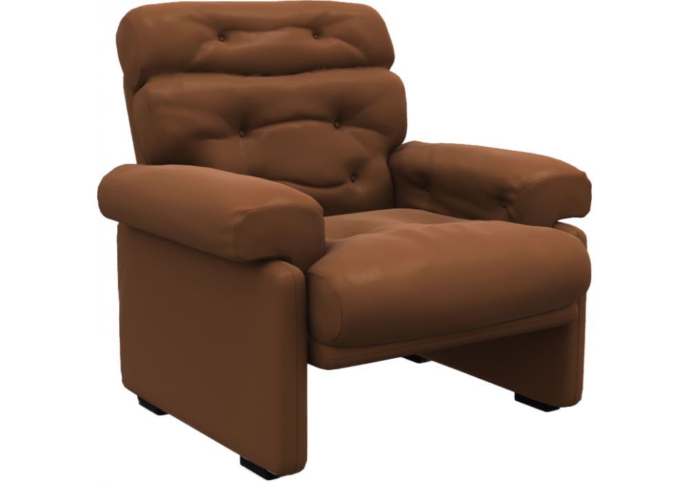 Coronado diseñada por Afra y Tobia Scarpa para B&B Italia es una butaca con estructura interna en acero tubular y perfiles de acero. Revestimiento en diferentes tejidos o pieles. Patas en material termoplástico negro.