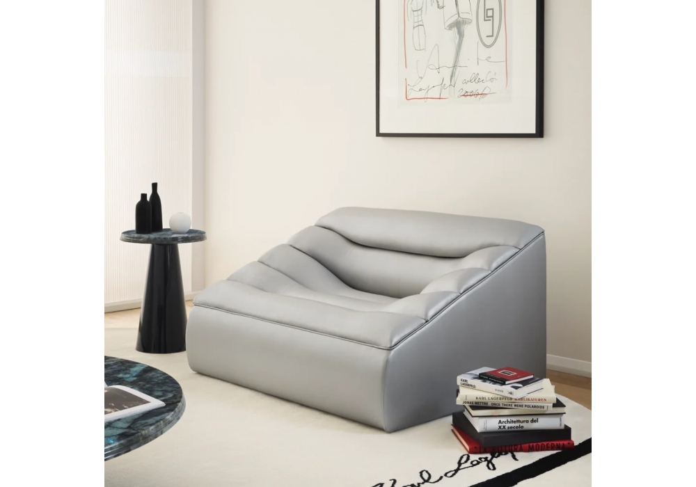 Wellen, diseñada por Toan Nguyen para Karl Lagerfeld Maison, es una butaca con estructura interior de madera y tapizado no desenfundable disponible en diferentes tejidos.
