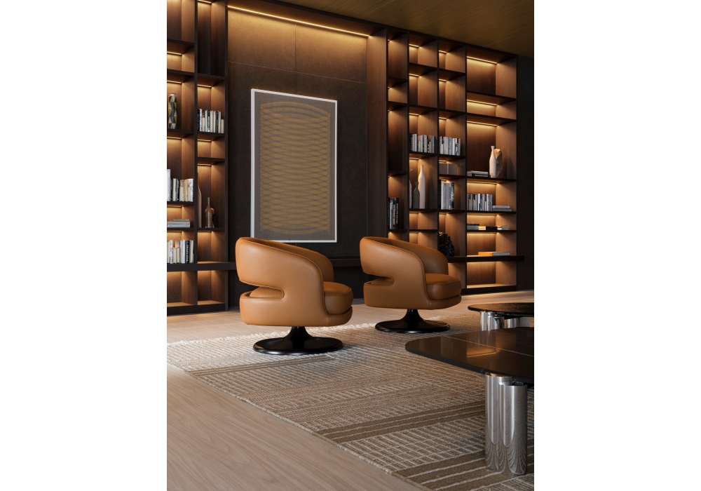 Linea diseñada por Vincent Van Duysen para Molteni&C es una butaca que encarna la estética refinada y el gusto distintivo del savoir-faire italiano, un hilo conductor para el director creativo Vincent Van Duysen en toda la colección Molteni&C. Base giratoria con la icónica forma de trompeta y revestimiento en tejido o piel.