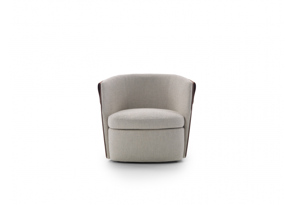 Ozzy diseñada por Patrick Norguet para Flexform es una butaca con estructura de metal en poliuretano moldeado revestido con tejido protector. Respaldo exterior de metal revestido de cuero. Disponible en diferentes acabados.