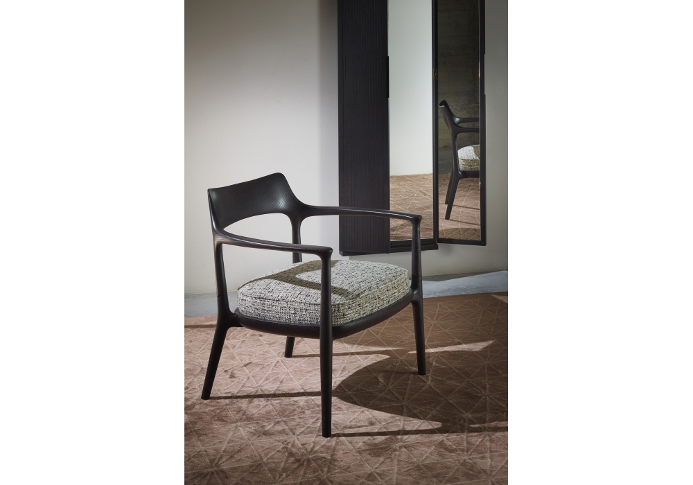 Janine Lounge diseñada por Roberto Lazzeroni para Ceccotti Collezioni es una butaca con estructura en madera maciza de nogal o fresno y asiento tapizado en tejido o piel.