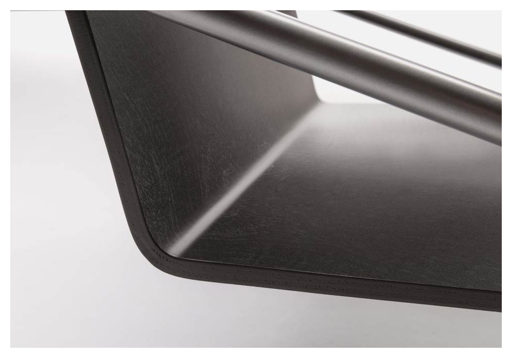 Fillet diseñada por Giacomo Moor para Living Divani es una butaca con estructura de acero tubular pintado con polvos epoxi. Carcasa de madera chapada en esencia o en láminas de madera multilaminar (gris rayado o roble piedra). Tapizado de cojines en diferentes telas.