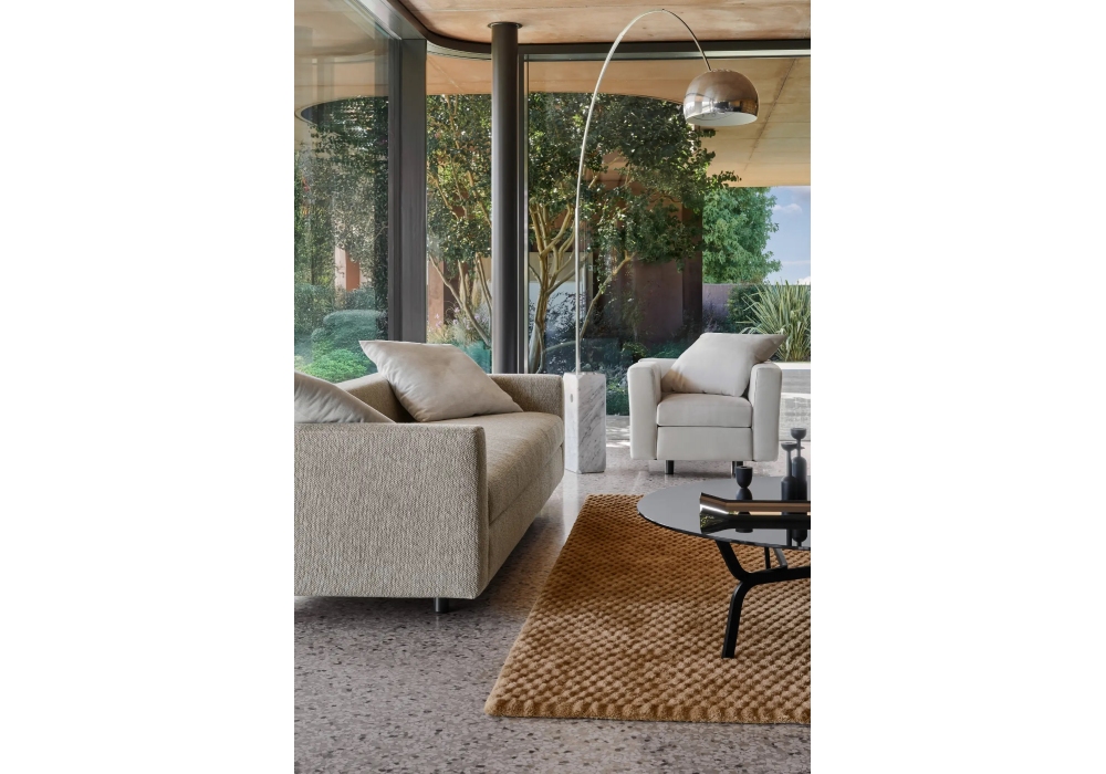 Bill diseñada por Hannes Wettstein para Baleri Italia es una butaca con estructura interna de madera multicapa. El acolchado y el cojín plegable, adaptable a la estructura del respaldo, están hechos de espuma de poliuretano elástica. Pies delanteros de acero con pintura en polvo color gris negro y ruedas traseras metálicas. Disponible en tejido o piel.
