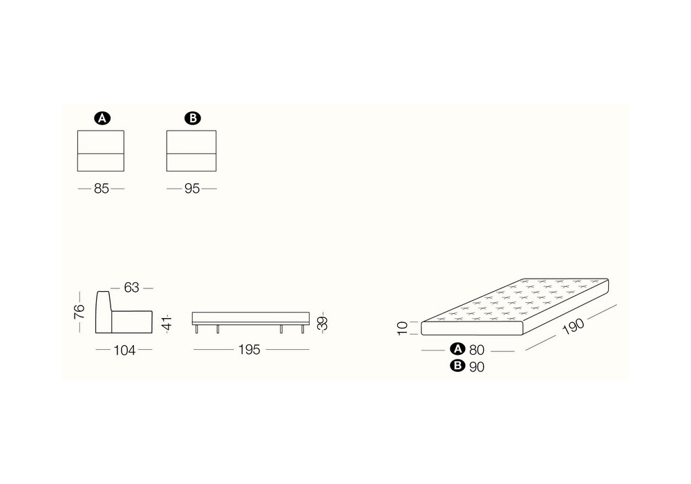 85 x 104/195 cm x H 39/76 cm (colchón 80x190x10 cm)