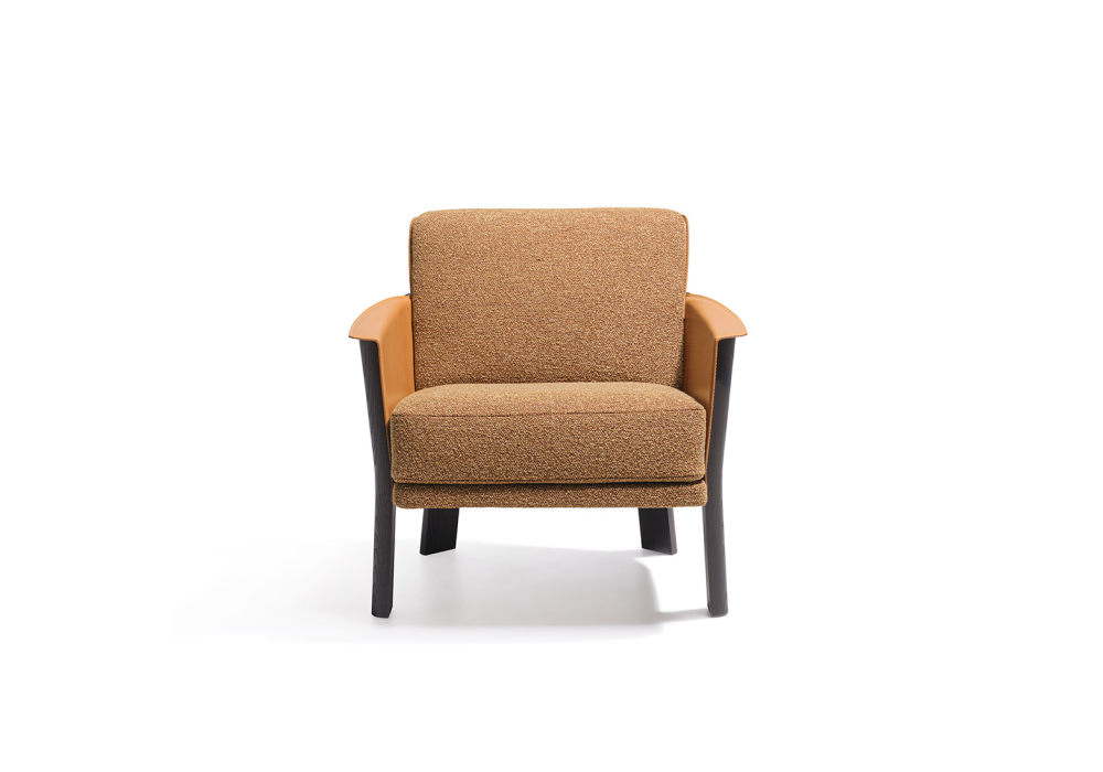 Armand diseñada por Christophe Delcourt para Molteni&C es una butaca con estructura de acero revestida de cuero regenerado y patas de fresno macizo. El asiento está fabricado en contrachapado con correas elásticas y un relleno de poliuretano de densidad variable. El respaldo termoformado está revestido de cuero y cuenta con un cojín de material compuesto y poliuretano de alta resistencia. Disponible con tapizado de tela o cuero y acabados en roble café o ámbar.